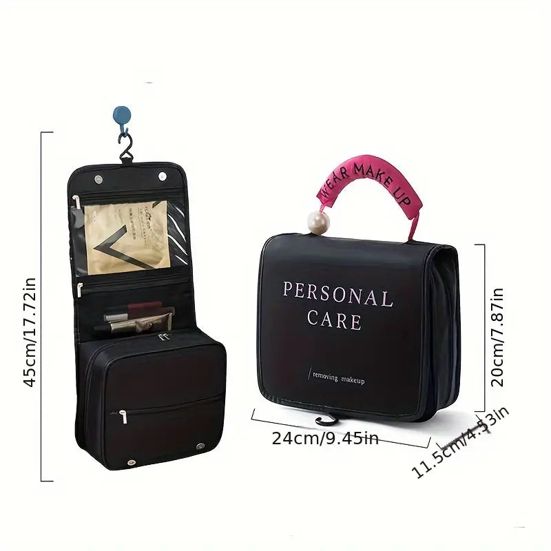 The Elouise Travel Cosmetic Bag is a spacious and waterproof organizer, perfect for storing your beauty and toiletry items. Its hanging design allows for easy access to all your products, making it ideal for travel or daily use.